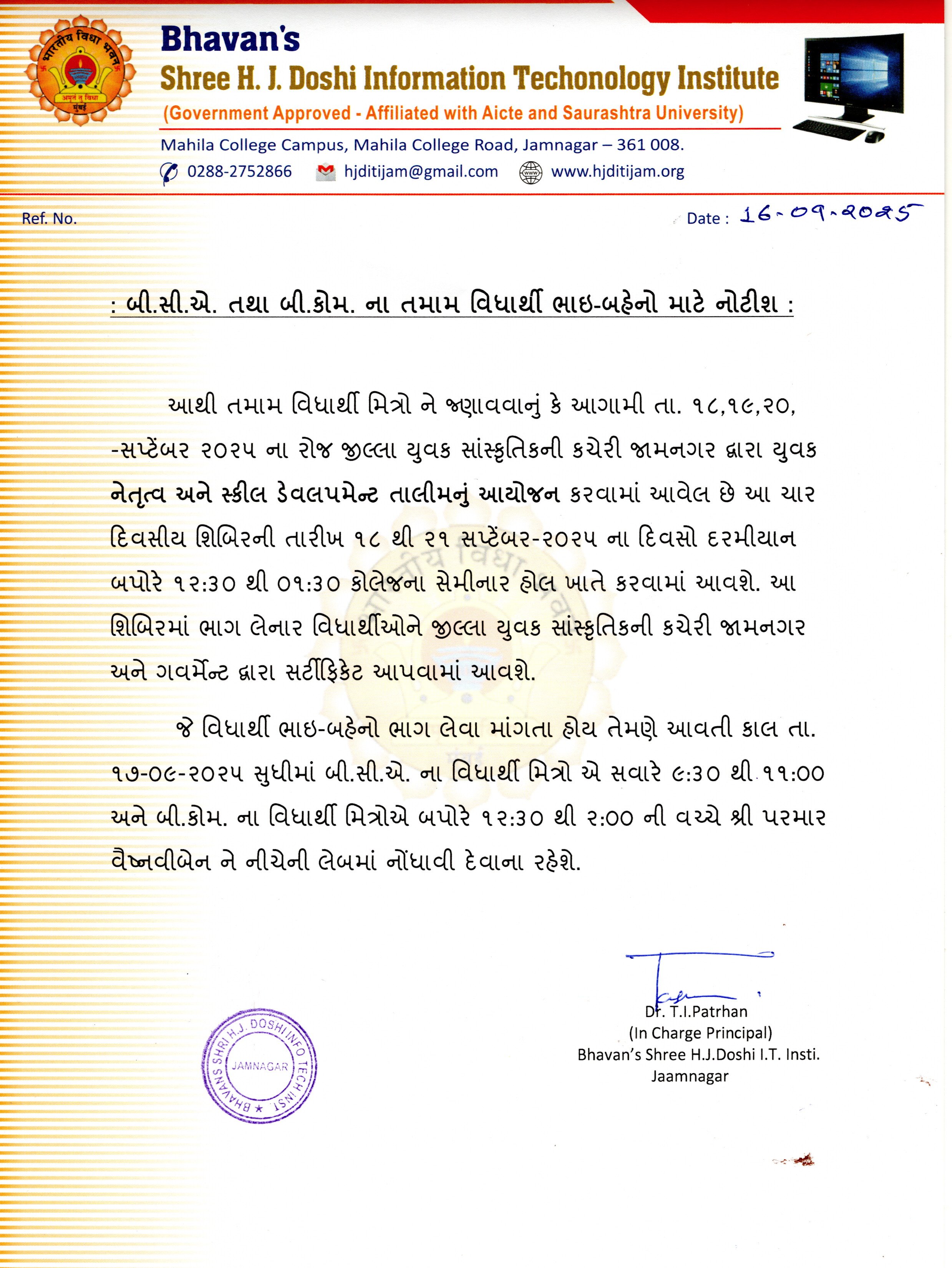 BCA & BCOM ALL STUDENT SKILL DEVLOPMENT SHIBIR NOTICE DATE16-09-2025.jpg